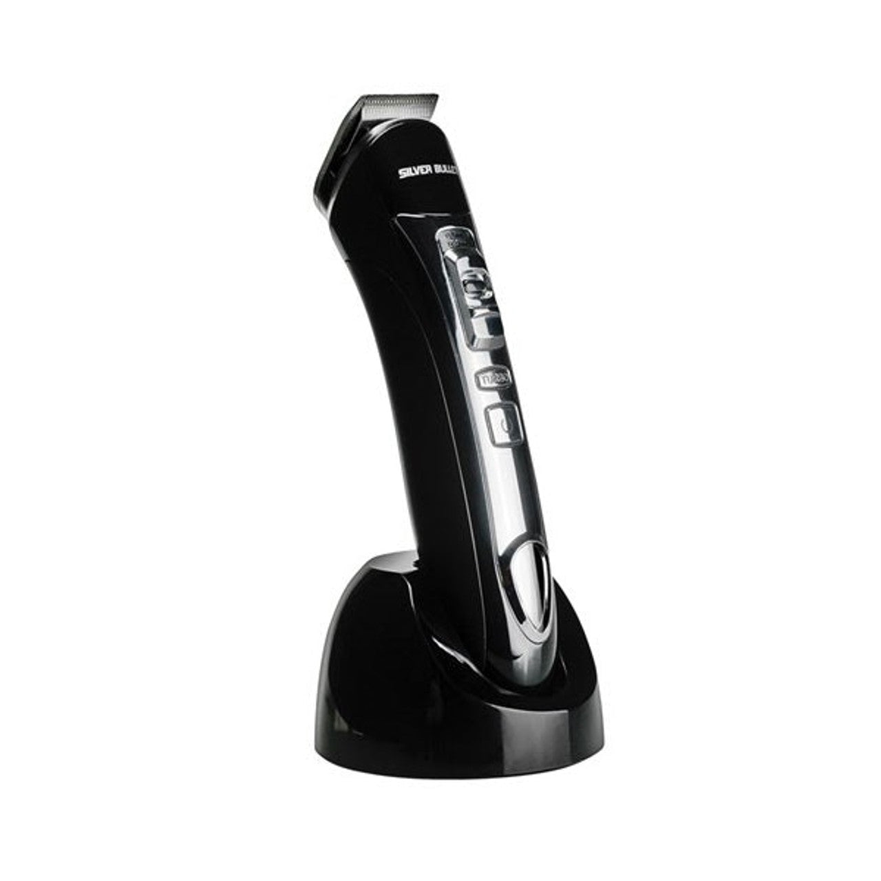 The Silver Bullet Lithium Pro 100 Trimmer - Black features a high-performance lithium-ion battery delivering up to 100 minutes of cordless use with the option to switch to corded operation. It offers turbo power control and a smooth, precision motor for detailed edging around ears and close-cut finishes. Dual voltage compatibility (100-240V) makes it perfect for travel. Includes three blade sets, four comb attachments (3mm, 6mm, 9mm, 12mm), lubricating oil and cleaning brushall in a sleek black design.